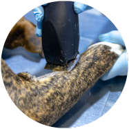 Op basis van het onderzoek is duidelijk dat Moose een hotspot heeft. Deze wonde kan je hond krijgen door overmatig bijten en likken aan de huid. Meestal is de oorzaak jeuk door allergie, maar het kan ook het gevolg van parasieten, stress of een dwangmatige reactie bij je hond zijn.