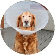 Zorg dat je hond niet bij de wonde kan.